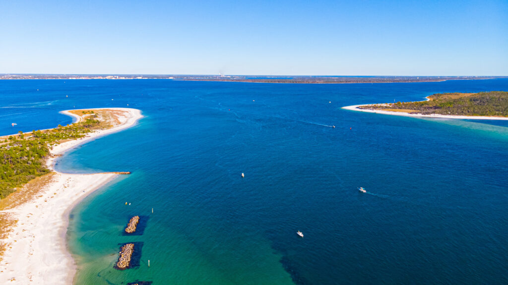 Located within St. Andrews State Park is Shell Island, a 7-mile-long barrier island that visitors can reach by ferry. A popular in-season stop, Shell Island is completely undeveloped (meaning no restrooms, shade, or food, so plan accordingly) and provides visitors with a natural setting to swim, snorkel, and observe the abundant amount of wildlife there.